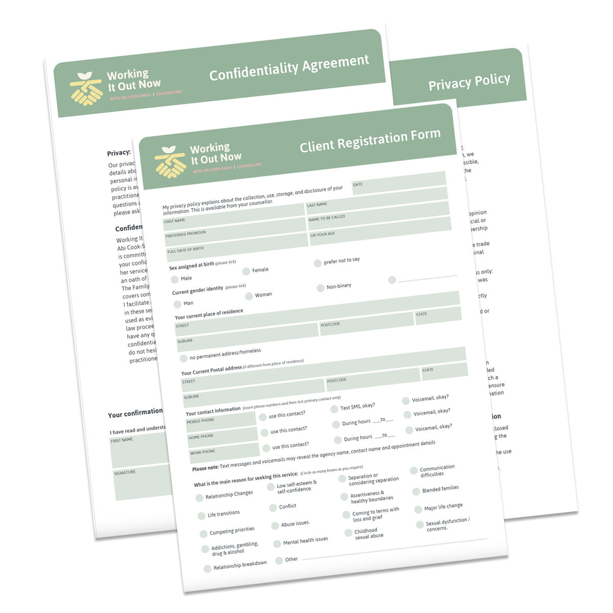 open the downloaded PDF with Adobe Acrobat Reader, fill them and send them to abi@workingitout.online or bring them along to your first session. Thank you.